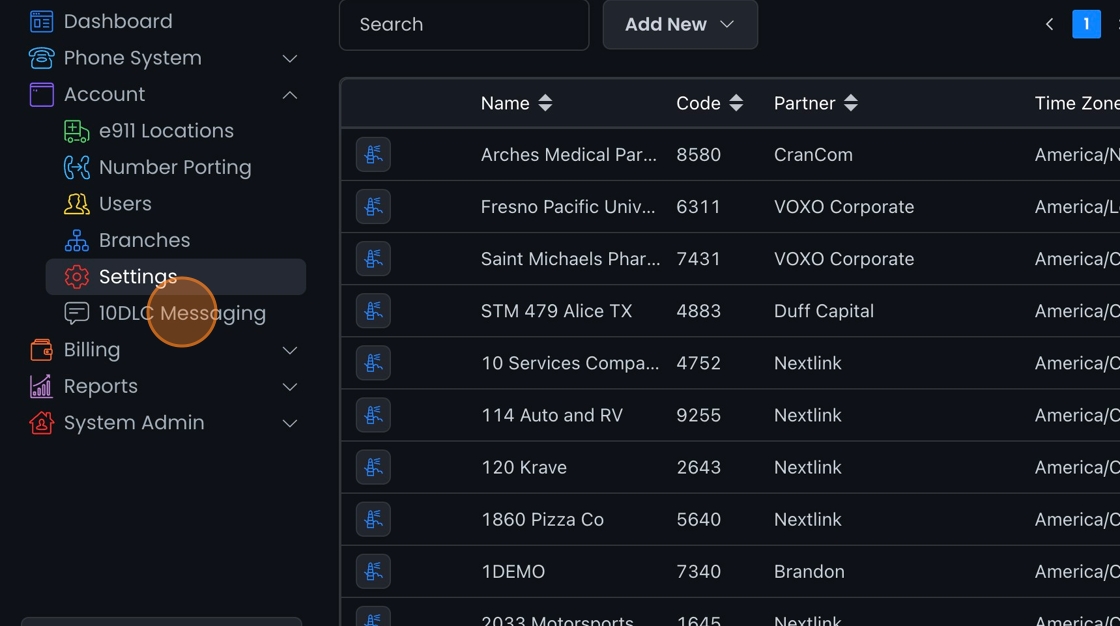 To access details regarding SMS click account in the admin portal and go to 10DLC Messaging. That will