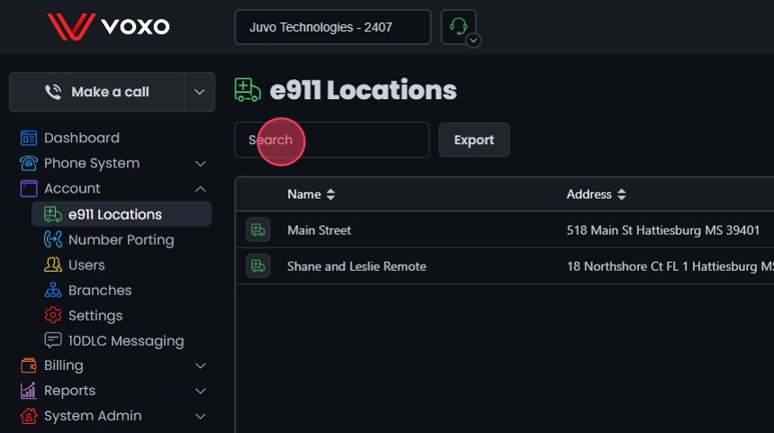 - Click on the e911 Location you want to edit or click the Edit button next to it.