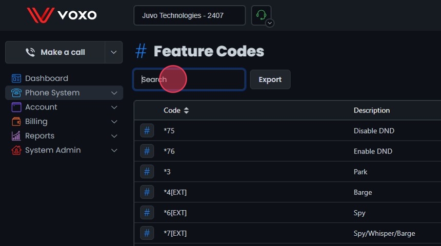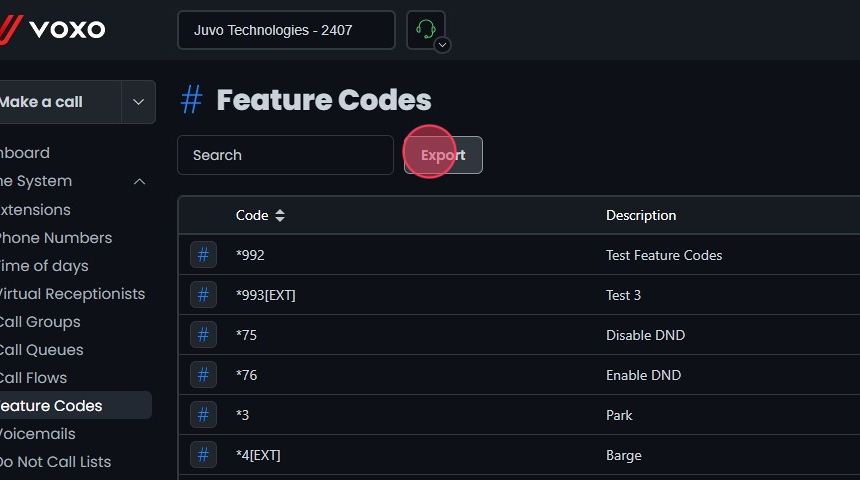 - Click on the feature code you want to edit or click the Edit button next to it.