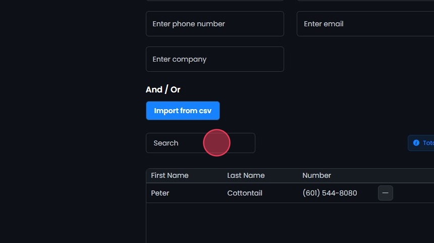 - Enter a number or description in the Search field to find specific contacts from the list.