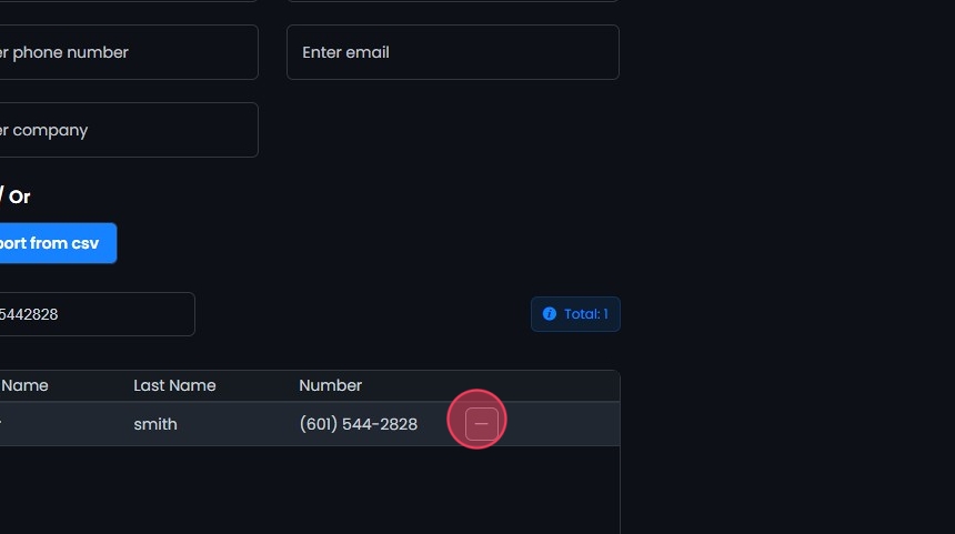- If you need to remove a phone number entry from the list after selecting add, clicking Remove number (-) will remove an entry before saving.