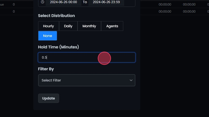 - Enter a specific hold time in minutes to filter the records.
