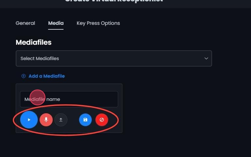 - Click Add a Mediafile to record or upload a new media file if needed.