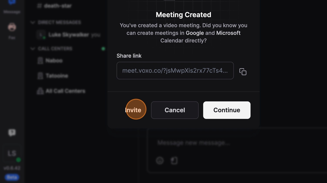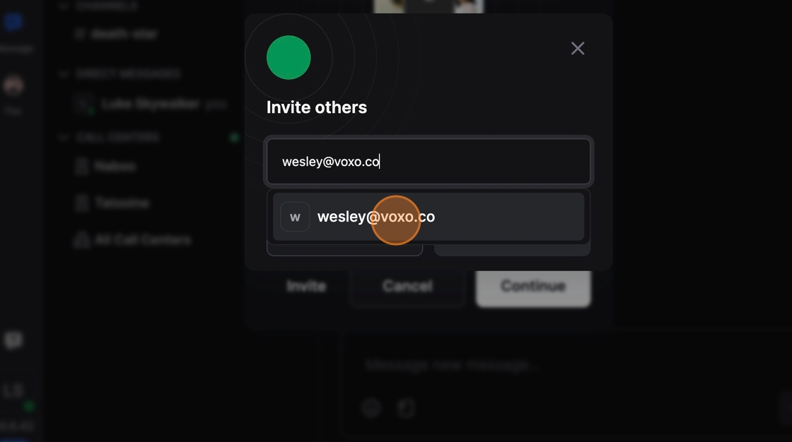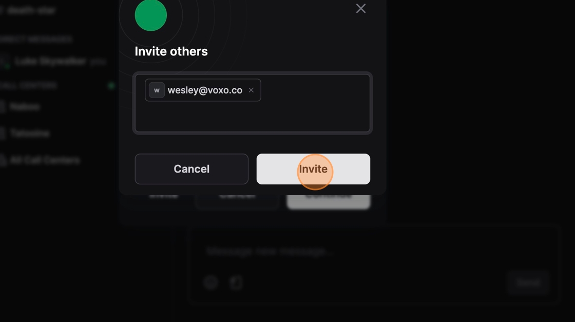 3. Click "Invite" to select users or type in emails to invite other clients.