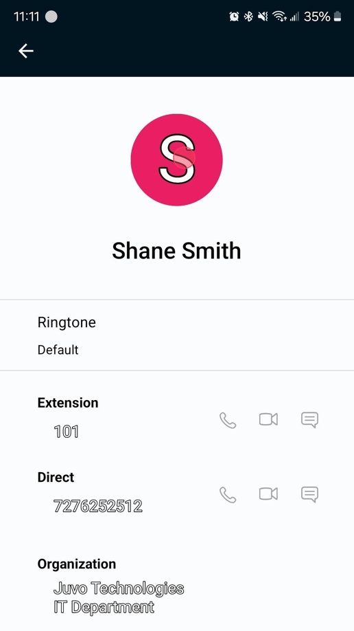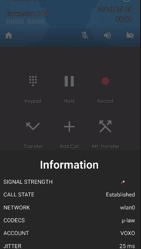 - While on a call, pressing the information (i) button at the top of the screen will present you with details about the call in progress.