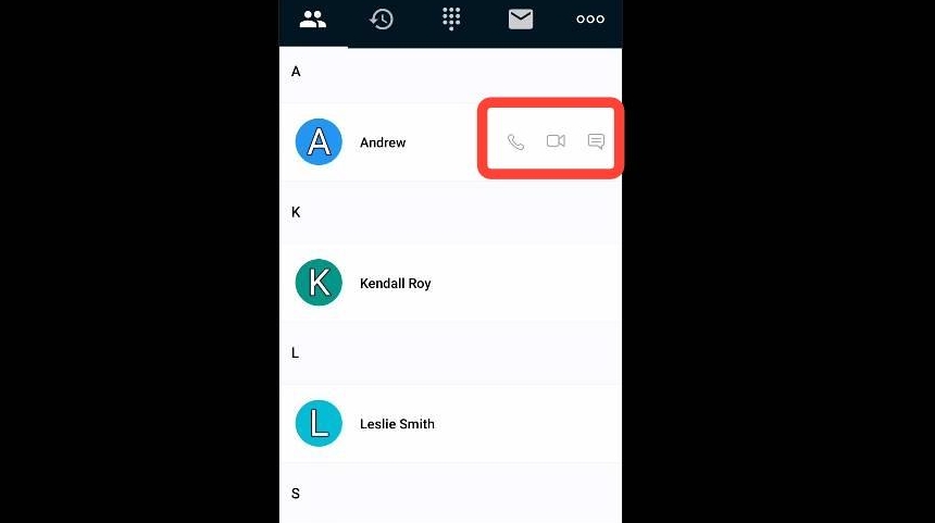 - Use Search at the top right of the screen to quickly find a contact by typing their name.